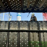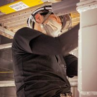 その鋼材が自分の頭の上にあって、上向きで磨き作業を行なってました!